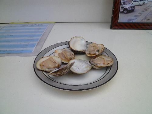 千里浜ドライブウェイに行った時にリーダーお勧めのお店に入ったんですが、またここの貝が美味しいこと。