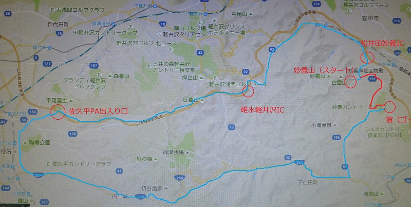 スタート点が妙義山でゴール点が宿。