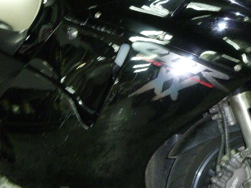 停まれる場所まで移動してまずは外観の確認。とりあえずカウルは悲惨な事に。